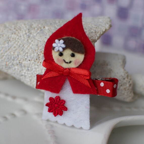 Pretty Christmas Girl Hair Clip Little Red Riding Hood You Choose Hair Color