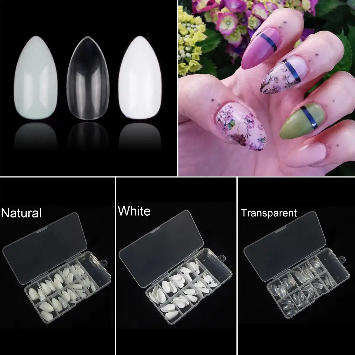 100 Pcs Per Box Short Almond Shape Artificial False Nail Tips 10
