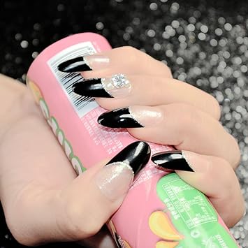 Echiq Black Long French False Nails Clear Black White Glitter