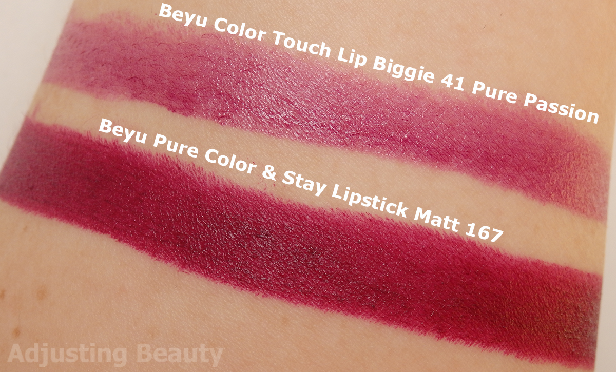 Beyu Pure Color & Stay Lipstick Matt 167 - the darkest purple and has the most cool tone to it, although it's in general warm.