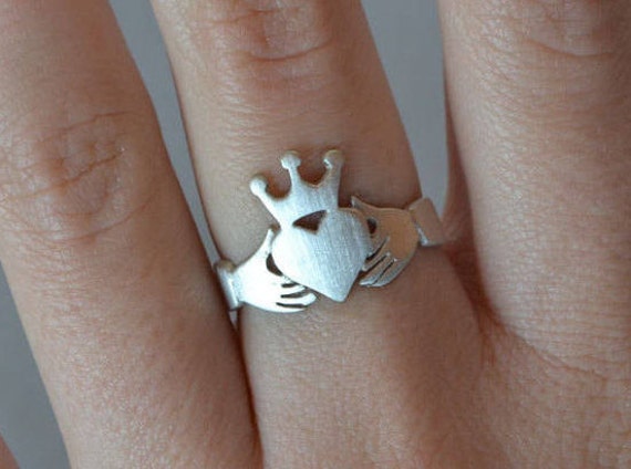 Sacred Heart Crown Claddagh Angel Wings Jewelry Ring Old Etsy
