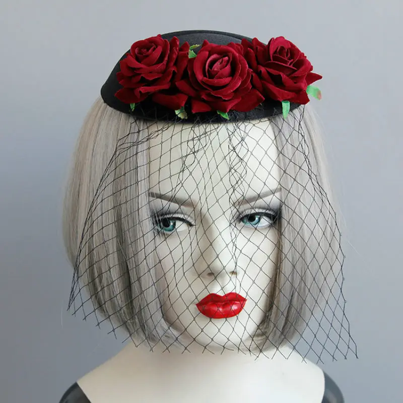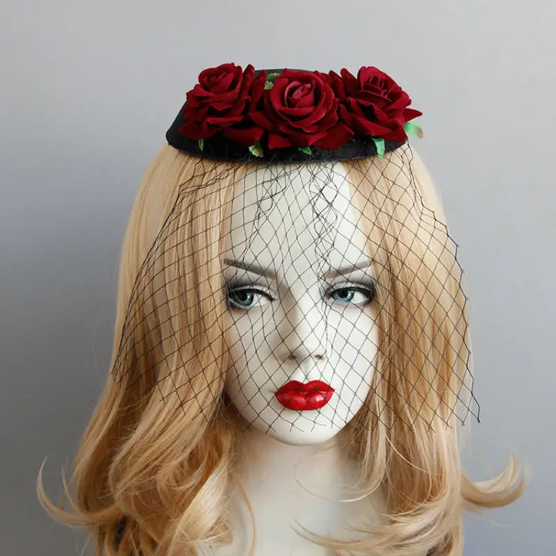 Us 2 58 35 Off Rose Flower Lace Veil Headband Adults Party Christmas Festival Hair Accessory Halloween Fancy Dress Floral Lace Red Black Color In