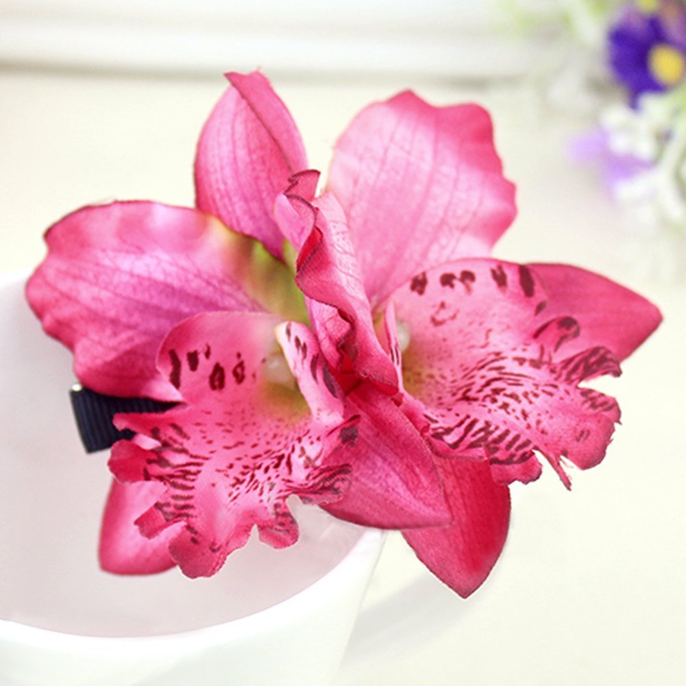 Ralmall Hawaiian Orchid Flower Hair Clips Hula Beach Fancy Dress Party Accessories Rose Red Silk Flower Arrangements
